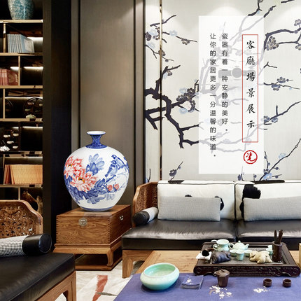 Designer hand painted blue and white ceramic vase with birds and flowers china