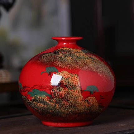 Oem Porcelain for Jahrriesnge red landscape vase cna1355