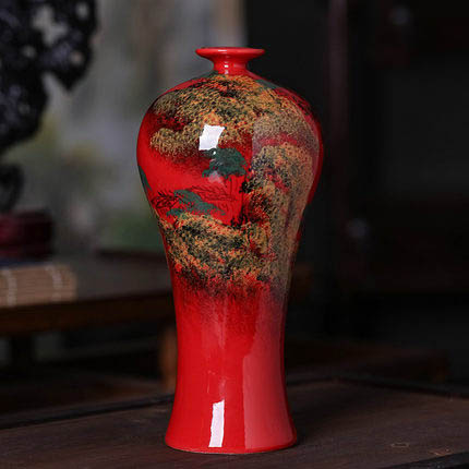 Oem Porcelain for Jahrriesnge red landscape vase cna1356
