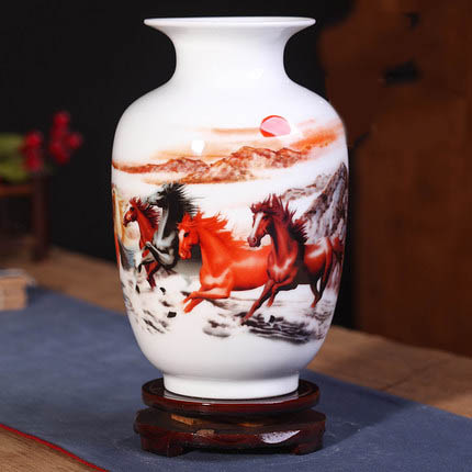 Sun and horses winter melon shaped ceramic small vase home decoration